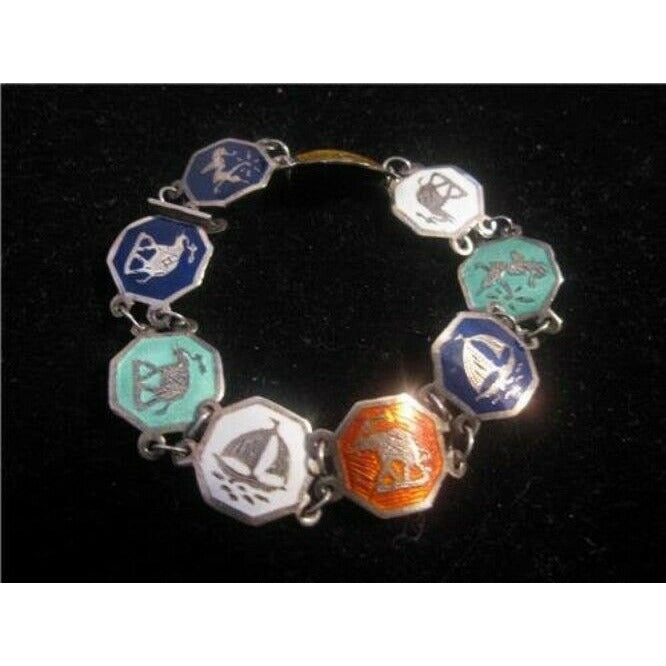 For sale is a vintage, Art Deco era, RARE, Siam sterling & multicolored enamel, niello, link bracelet ! A look from the past that translates beautifully into today's styles!