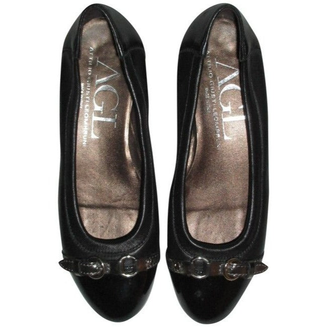 Attilio Giusti Leombruni Black Patent Toe Ballerina Flats Size Eu