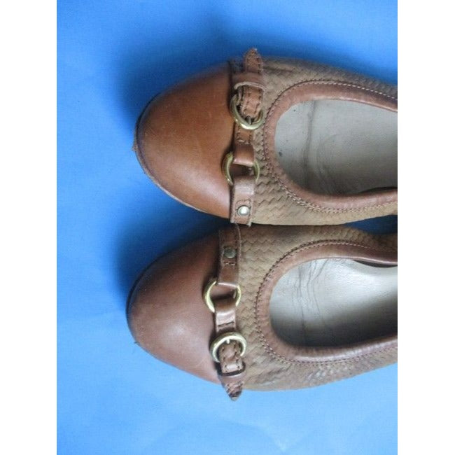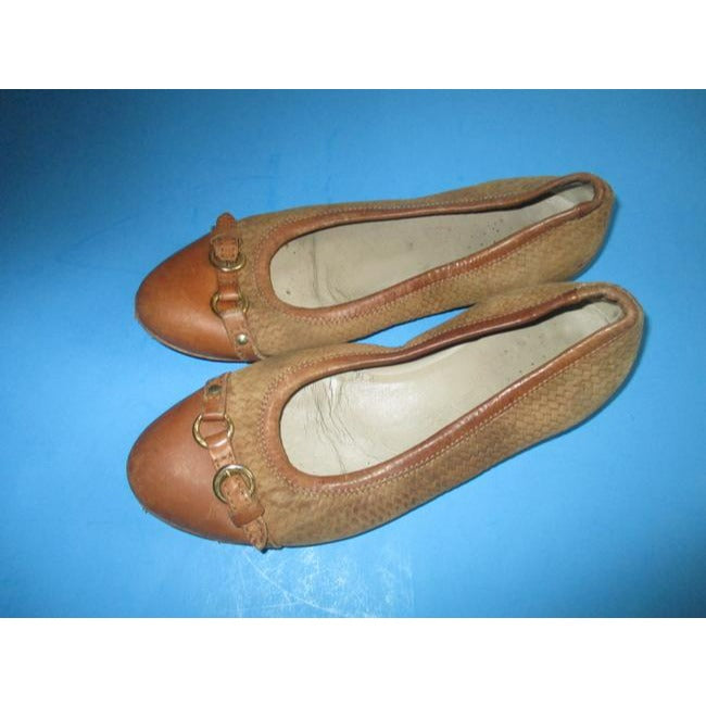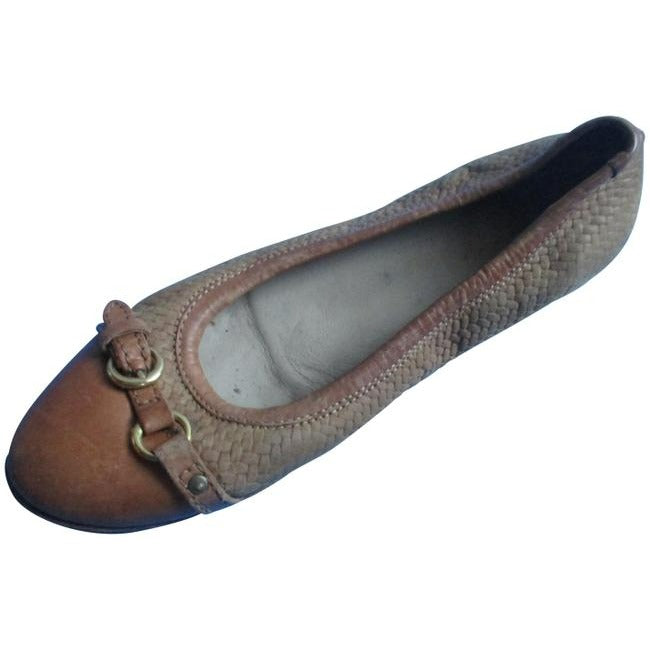 Attilio Giusti Leombruni Brown Cognac Camel Woven Slip On Ballet Flats Size Eu