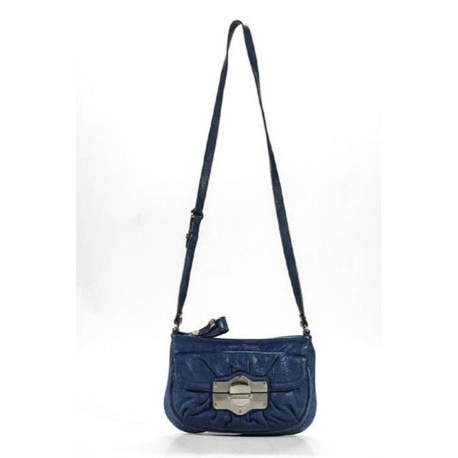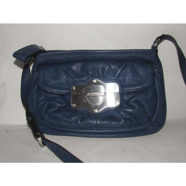 B Makowsky Denim Blue With Bold Chrome Accents Leather Cross Body Bag