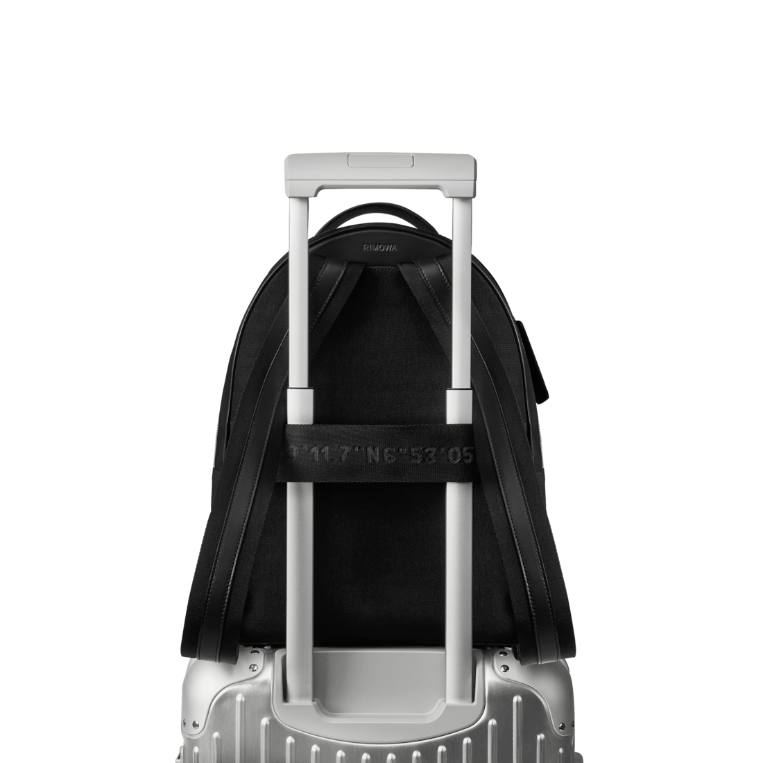 Crafted out of premium materials like durable canvas and full-grain leather, the RIMOWA Never Still Backpack Medium in Black features two front zipped grooved pockets in leather, adjustable shoulder straps (min 25 cm, max 43 cm), and bespoke metallic pieces that showcases the RIMOWA monogram and logo. Inside, a large double zipped compartment and an internal 13-inch laptop-sized pocket easily accommodate daily essentials. Includes a complimentary removable leather address tag.