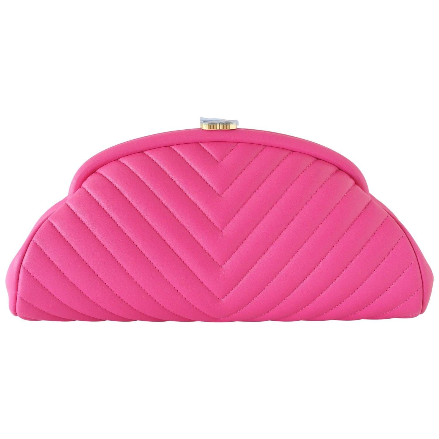Chanel Bag Rare Pink Chevron Lambskin Clutch new