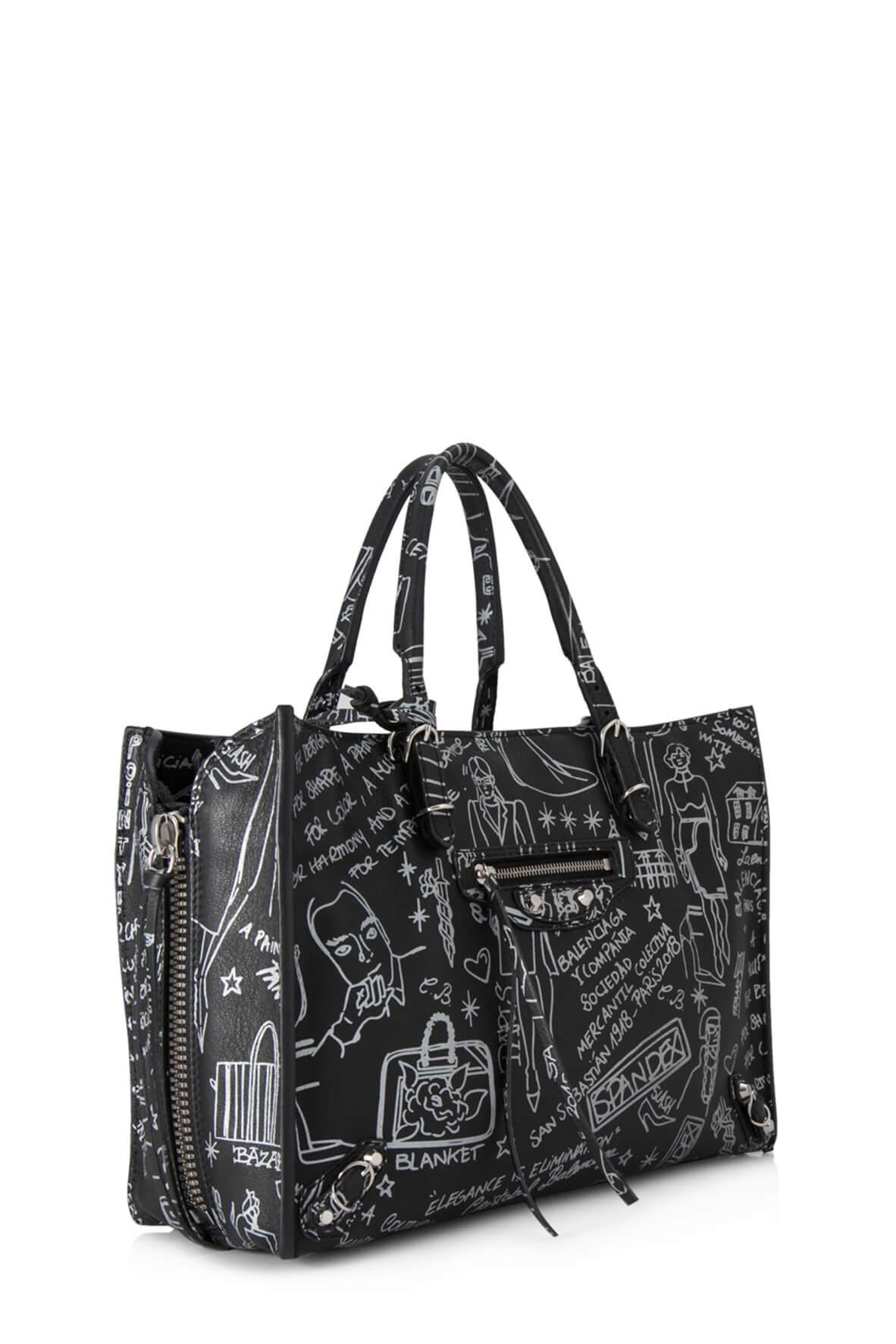 Balenciaga has a knack for delivering classic style in a modern way. This incredible mini bag from features super soft calfskin leather, silvertone hardware. It has an invisible covered magnet at the top, and a removable long strap to wear this cutie as a crossbody bag.