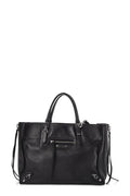 Balenciaga black supple grained leather Papier A6 side-zip tote features zip side gussets and polished silvertone hardware.