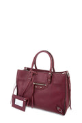 Balenciaga maroon leather Papier A6 side-zip tote features zip side gussets and polished silvertone hardware.