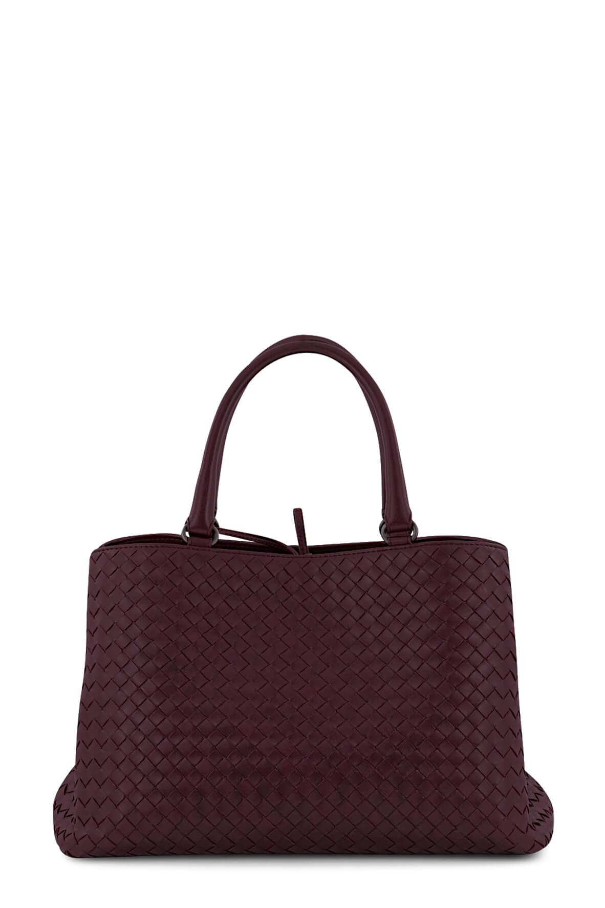 This Bottega Veneta Milano Tote Intrecciato Nappa Large is a timeless, versatile piece you can surely take from day to night. Beautifully crafted from burgundy nappa leather in Bottega Veneta's signature intrecciato woven method, this stylish tote features dual-rolled handles, gusseted sided and brunito-finished gunmetal-tone hardware accents. Its wide open top showcases a taupe suede-lined interior divided into two compartments with side zip and slip pockets that houses all your essentials and more. A signature, understated everyday piece only from Bottega Veneta.