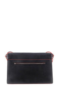 This Celine Diamond Shoulder Bag is a minimalist piece with a recognizable look. The exterior combines black calfskin with taupe calfskin, red suede, and silver hardware. The Celine logo is engraved on the push-lock closure and the bag also includes a small zip pocket on the back. Wear it on your shoulder with the comfortable strap. The interior is in a black leather and is divided into two compartments. This bag is perfect for any occasion with its sleek design, iconic of the Phoebe Philo era at Celine.