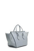 This chic tote offers a new take on the iconic luggage handbag style, crafted of richly grained blue leather in a structured and spacious shape. The top handles secure without hardware with a knot detail that lends the bag its name. The top features a leather flap that can be tucked in and reveals a soft matching suede interior with a zippered pocket.