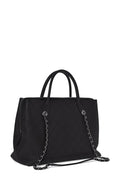 This stylish tote is beautifully crafted of luxurious grained vegetal dyed stitched calfskin leather. The bag features ruthenium chain link leather threaded shoulder straps. The top is open to a partitioned black fabric interior with a central zipper compartment, patch pockets, and open compartments.
