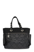 Not only is the Chanel Grand Shopping Paris Biarritz Tote Bag perfect for those days when you need to carry a little more than you usually do, its durability makes it perfect for travel. Named after Biarritz, the French resort city in which Coco Chanel opened up her third shop in 1915, the exterior has water-resistant coated canvas framed by classic Chanel quilted leather and includes one front zip pocket complete with a Chanel CC logo charm, and two side pockets with snap closure. The interior is lined features several pockets, including a removable zipper pouch.