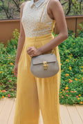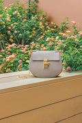 Crafted in Italy from motty grey lambskin punctuated with polished gold-tone hardware, this discreet yet instantly recognisable silhouette features a foldover top with a twist-lock closure that opens to a compact suede-lined interior and a front embossed logo stamp. An internal slip pocket will keep your valuables safe, whilst the detachable and adjustable shoulder strap ensures you will have options on the go.