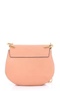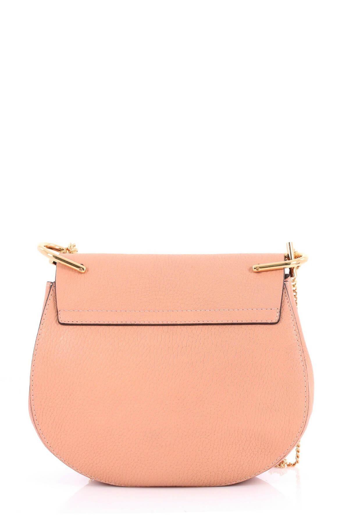 This Chloe Drew Crossbody Bag Leather Small is a must-have accessory for modern fashionistas. Crafted in pink leather, this petite crossbody bag features a simple round silhouette, long chain strap accented with oversized U-shaped rings and gold-tone hardware accents. Its oversized turn-lock closure opens to a beige suede-lined interior with patch pocket perfect for storing bare essentials. A stylish, go-to essential for on-the-go moments.