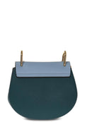 Blue Drew shoulder bag from Chloé featuring a foldover top with push-lock closure, a gold-tone chain shoulder strap, gold-tone hardware, a main internal compartment and a front embossed logo stamp.