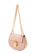 Drew shoulder bag from Chloé featuring a foldover top with push-lock closure, a gold-tone chain shoulder strap, gold-tone hardware, a main internal compartment and a front embossed logo stamp.