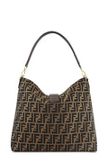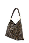 This stylish shoulder bag is finely crafted of Fendi Zucca canvas in tobacco brown. The bag features a dark, chocolate brown leather shoulder strap and a frontal flap with a polished gold hardware. The flap opens to a brown fabric interior with a zipper pocket.