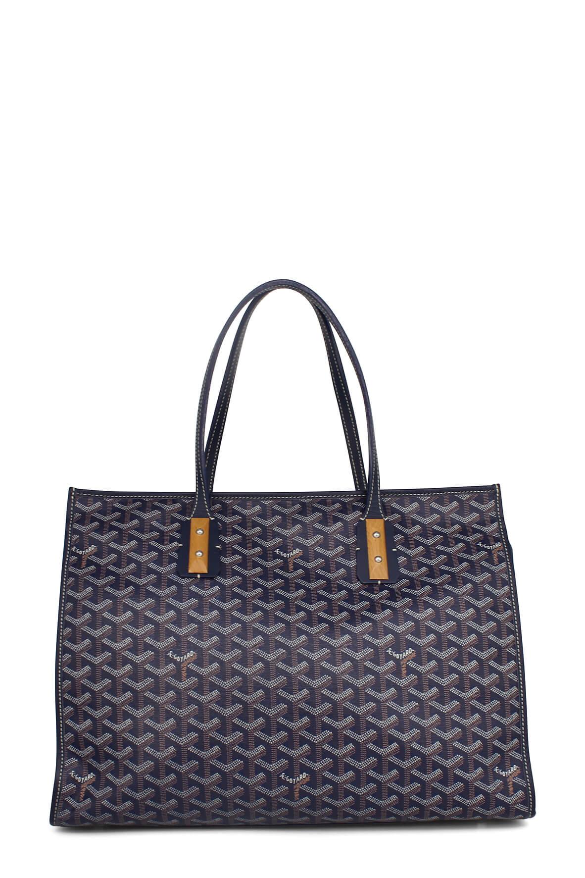 This stylish tote is luxuriously crafted of Goyard canvas with the classic Goyard chevron monogram. The handbag features sophisticated wooden shoulder strap anchors and leather trim including looping leather shoulder straps. The top zipper opens to a spacious canvas interior.