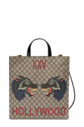 A vintage-inspired design for the logo-conscious man on the move. An evolution from the house Supreme canvas, this tote is immaculately constructed from a softer version of the iconic beige logo pattern and is detailed with a wolf motif to the front, leather trims and an adjustable shoulder strap.