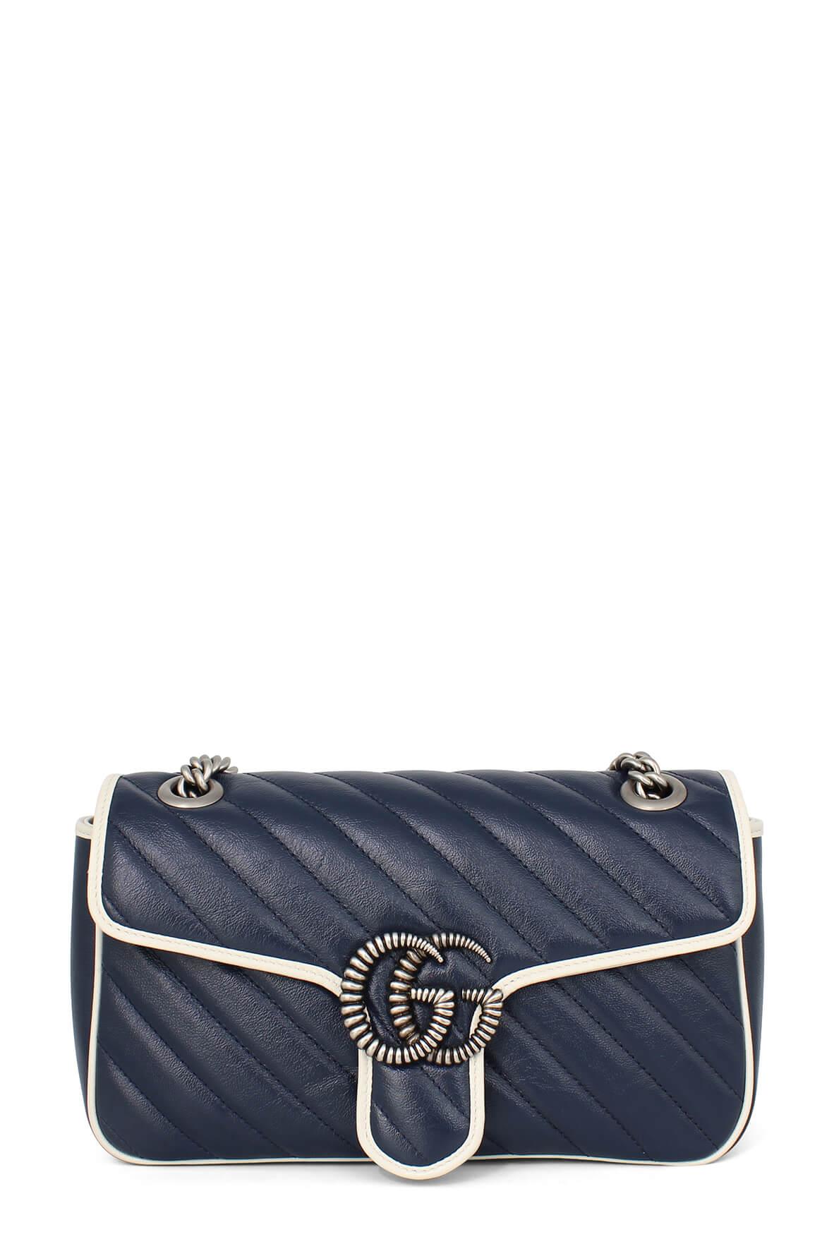 GG Marmont Small Matelasse Shoulder Bag Navy White