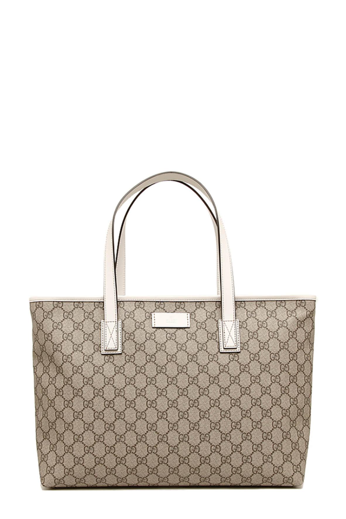 Soft GG supreme canvas body with leather trim. Comes with double leather handles and zipper closure. Perfect for your everyday essentials.
