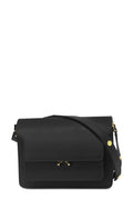 Marni's instantly recognizable 'Trunk' shoulder bag may look small but the well-organized interior has multiple compartments for your cards, cosmetics and cell. It's been made in Italy from smooth black leather and finished with gold hardware.