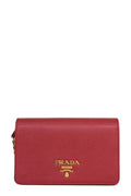 A practical piece for the modern woman, this compact cross-body bag has been crafted in Italy from the label's signature red Saffiano leather.