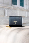 This stunning Prada bag is designed in a structured shape with chunky gold hardware. It's crafted from saffiano leather and opens to a compact interior that's spacious enough to hold your cardholder, cell phone and lip color. Carry yours as a shoulder bag or cross-body.