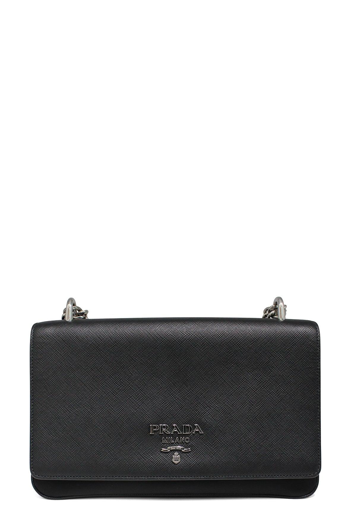 Saffiano Lux Nylon Chain Shoulder Bag Black