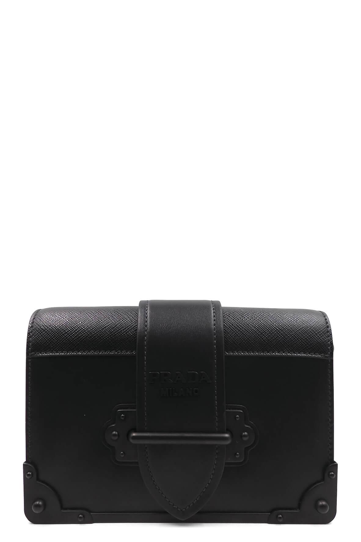 The only equivalent to that little black dress is a little black bag. Case on point: this leather Cahier shoulder bag from Prada, of course. There's nothing better. Featuring a foldover top, a front logo plaque, an internal slip pocket, an internal logo plaque, a chain and leather shoulder strap and black-tone hardware.