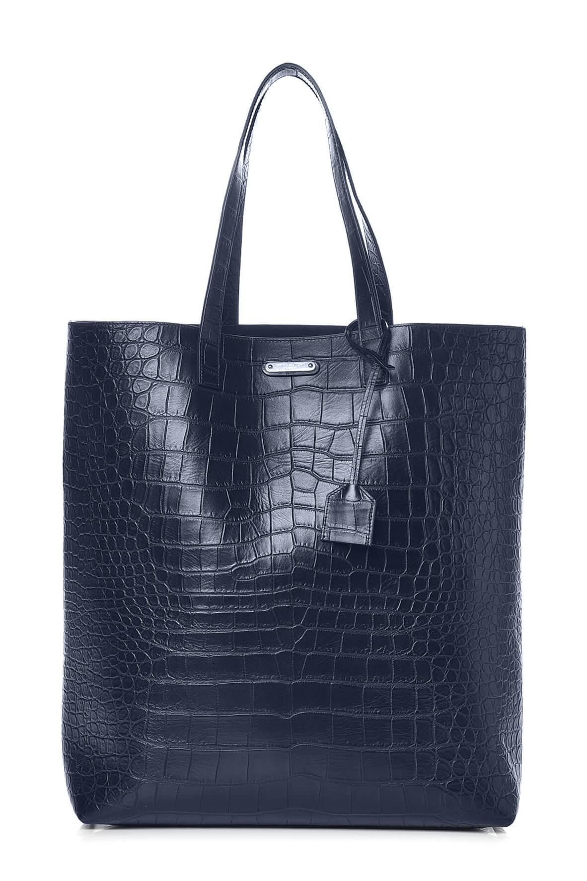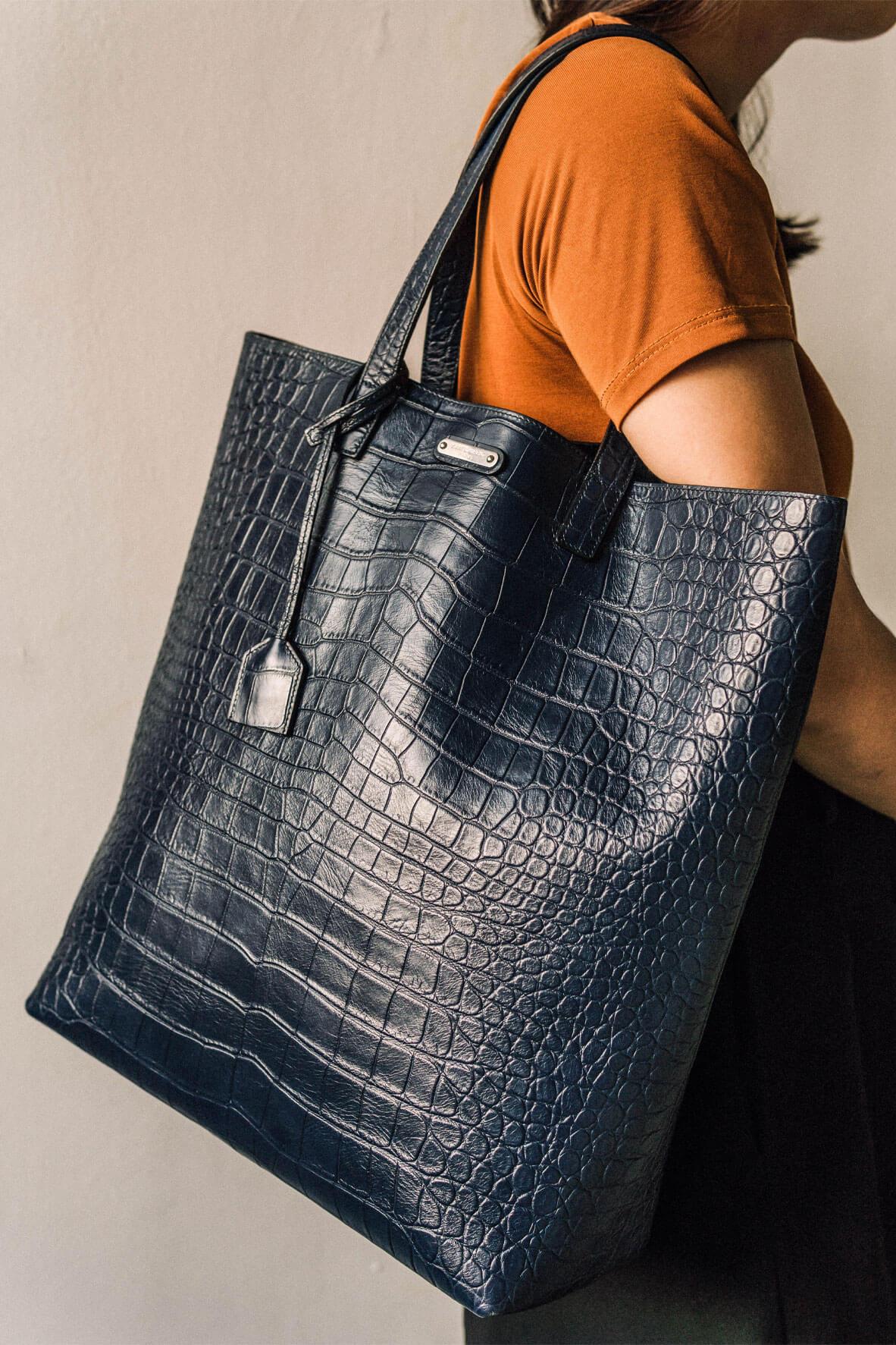 Crocodile Embossed Tote Navy