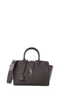 This classic sleek tote is crafted of smooth calfskin leather in gray with croc embossed leather winged sides and shoulder strap. The bag features rolled leather top handles, a crossover strap with a weighted polished silver YSL monogram logo, and over extended top zipper. This opens to a matching leather and suede interior with a hanging patch pocket. This is a fantastic tote for day or evening wear, from Saint Laurent!