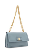 This structured Salvatore Ferragamo bag is crafted in supple leather. A hidden push-lock fastens the top flap, which is detailed with a charming bow. The chain shoulder strap can be long or doubled.
