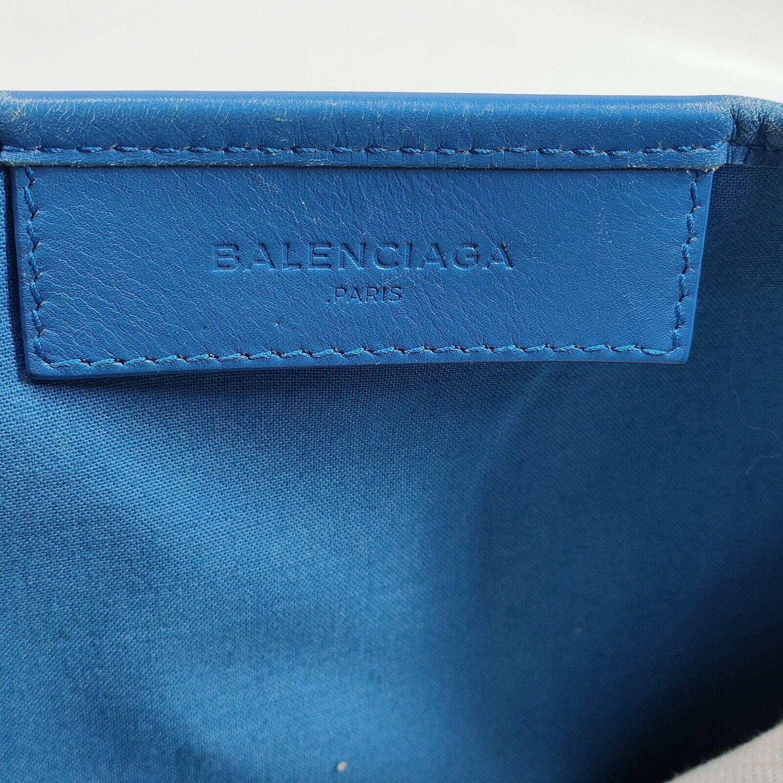 Balenciaga 'Cabas' tote bag in royal blue leather & canvas with an attached wallet