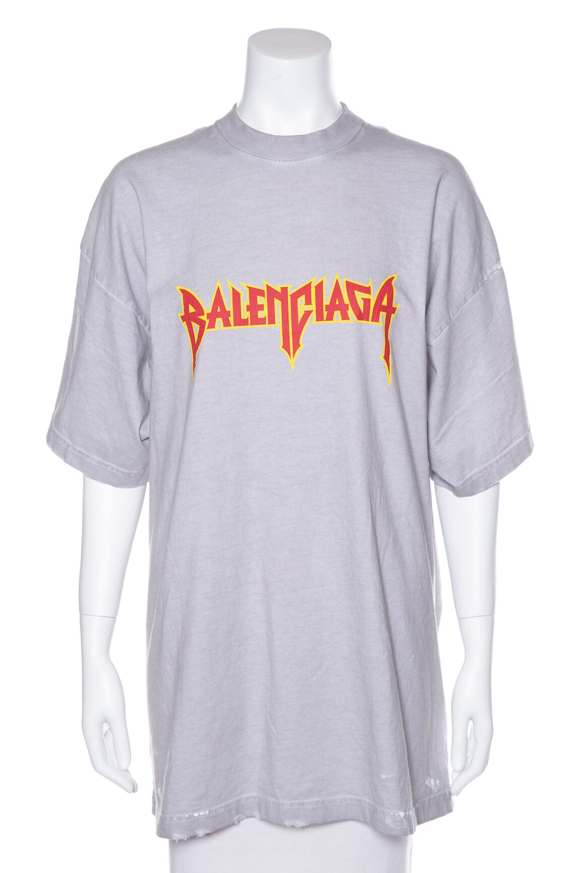 Balenciaga Grey Metal Distressed Logo T-Shirt SZ L