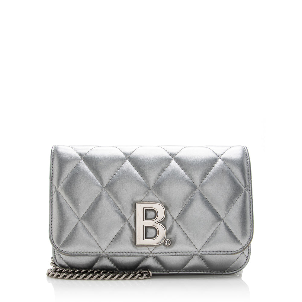 Balenciaga Quilted Metallic Leather B Dot Shoulder Bag (SHF-16927)