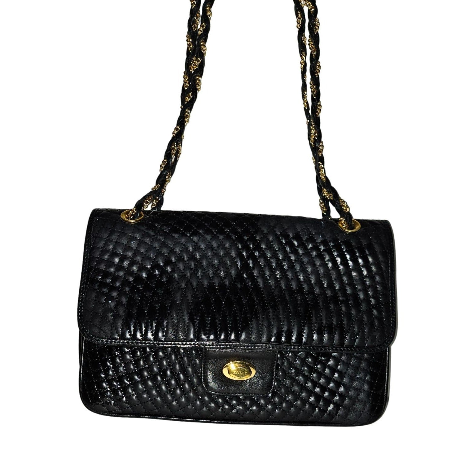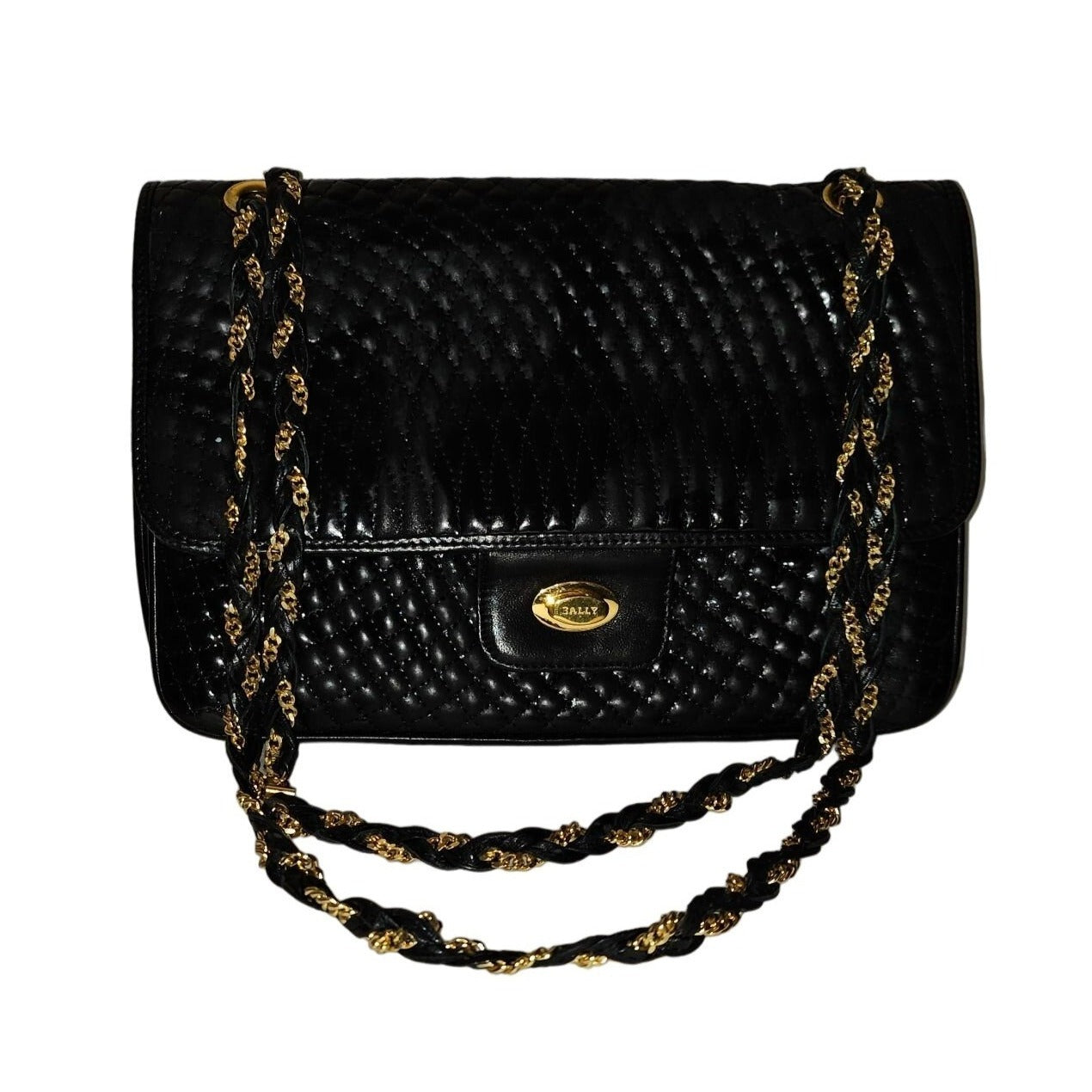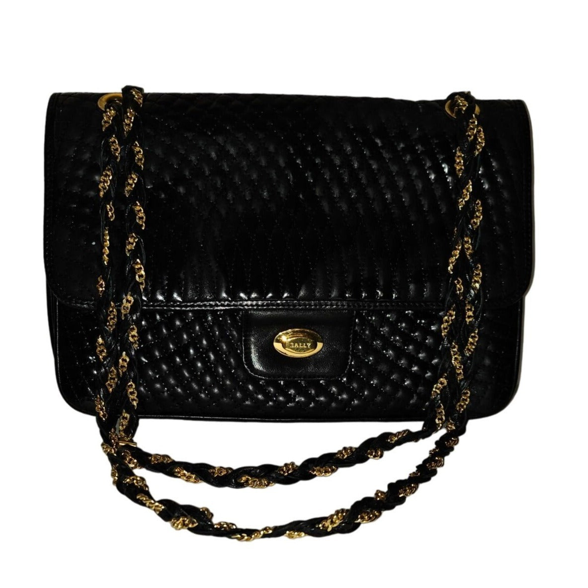 Bally black quilted leather large shoulder bag w chain strap