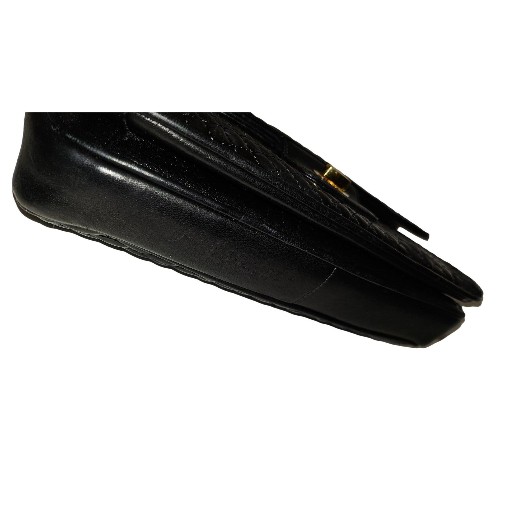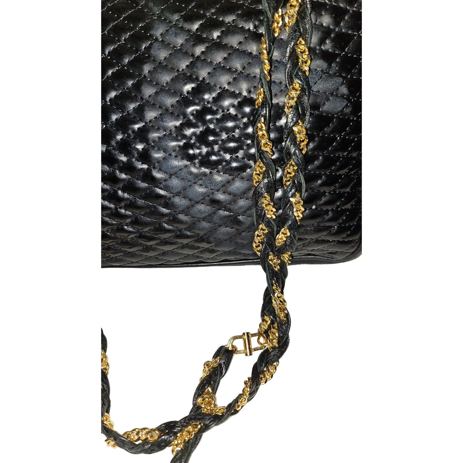 For sale is a vintage, unique, AMAZING, Bally, diamond design, quilted black leather, two-way style- clutch, cross body, or shoulder purse with bold, gold accents, multiple compartments, a removable and adjustable leather shoulder strap and envelope front snap closure! It is a unique take on a classic style from Bally that is still completely fashionable today!