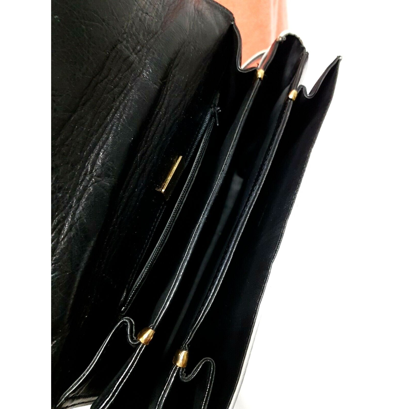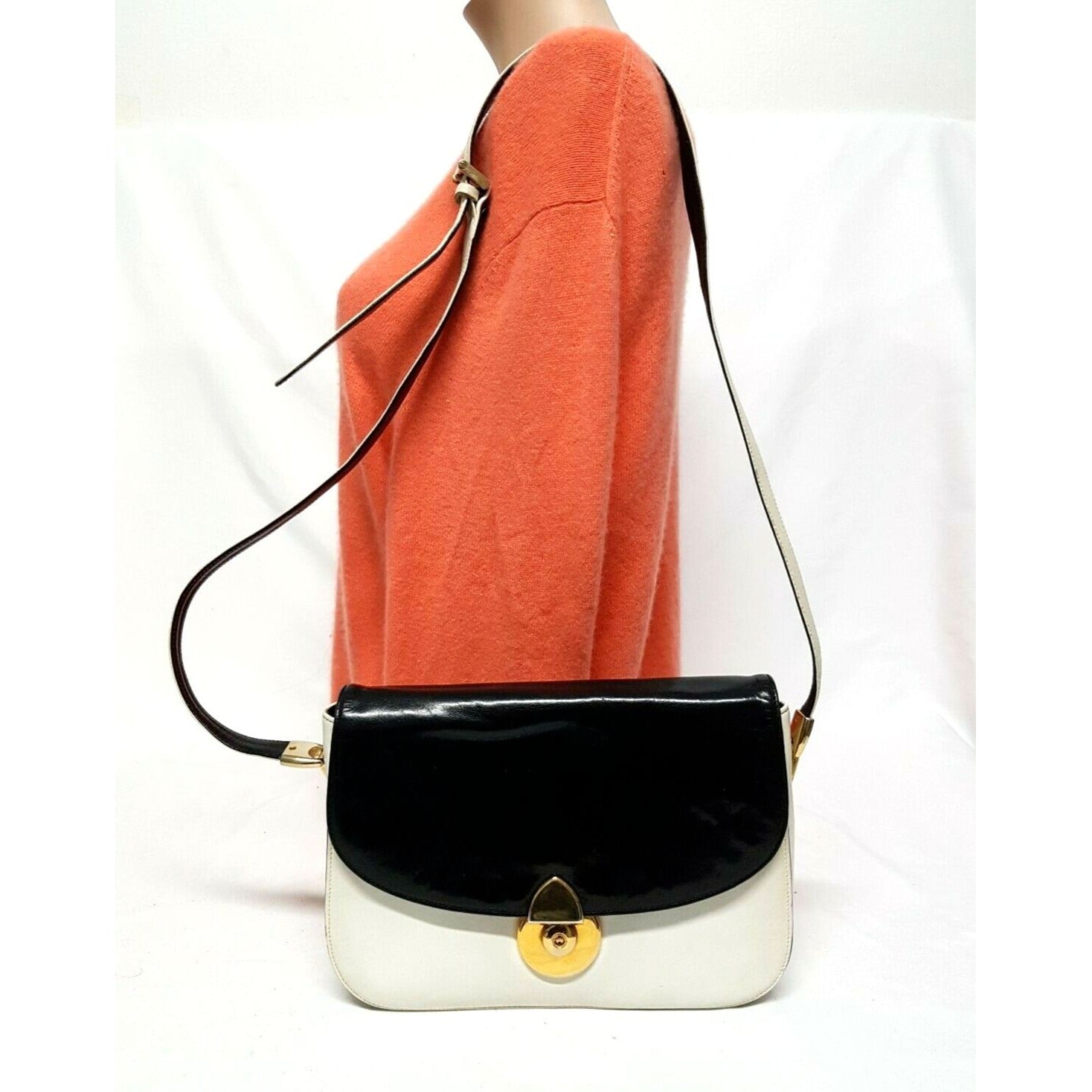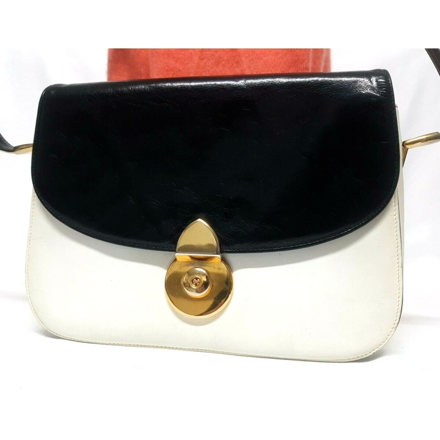 For sale is a vintage, Bally, black & white leather color block cross body with gold hardware, multiple compartments, and chic mod style!