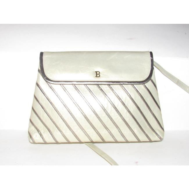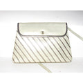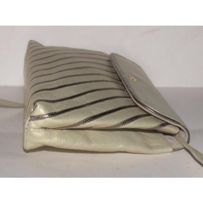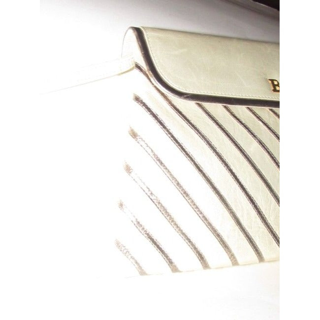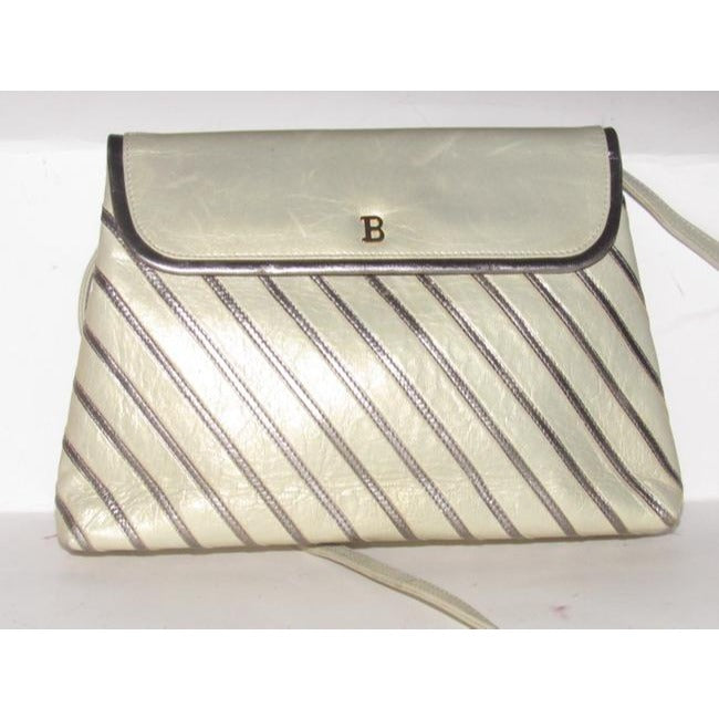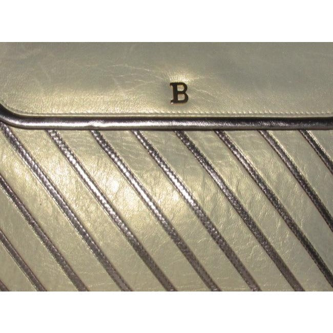 Bally Vintage Pursesdesigner Purses Greenish Gold Leather With Silver Striped Accents Shoulder Bag