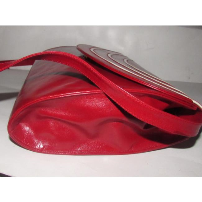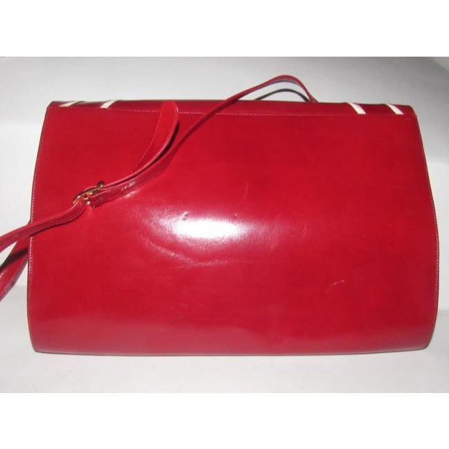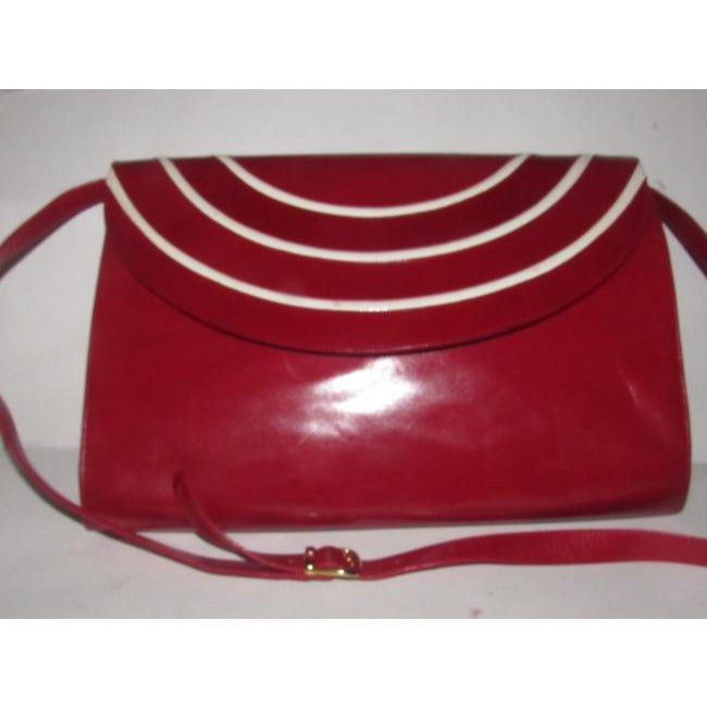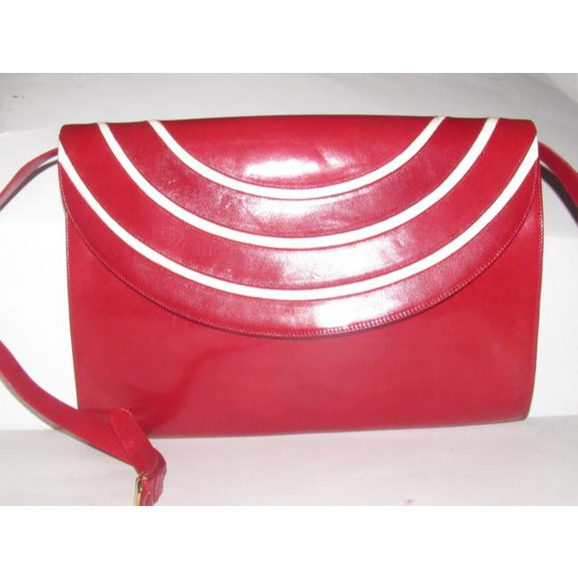 Bally Vintage Pursesdesigner Purses Red Leather With White Striped Accents Shoulder Bag