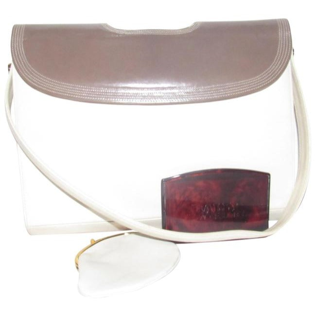 SALE! Bally Vintage Taupe & Ivory Leather Shoulder Bag