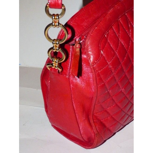 Bally Vintage Pursesdesigner Purses True Red Quilted Leather Suede Shoulder Bag