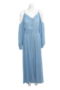 Balmain Denim Cold Shoulder Maxi Dress with Gold Button Detail. This item is in very good condition.