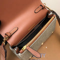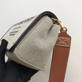 A compact crossbody bag in cotton canvas and two-tone Italian-tanned. The style is tagged with our Horseferry print and accented with a polished triple-stud closure. Wear across the body or detach the strap to carry as a clutch.