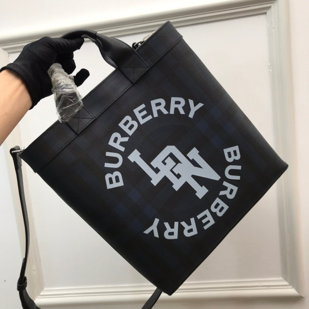 BB Logo Graphic Convertible Tote London Check Canvas Large For Mtlm, Bags 15in/38cm