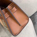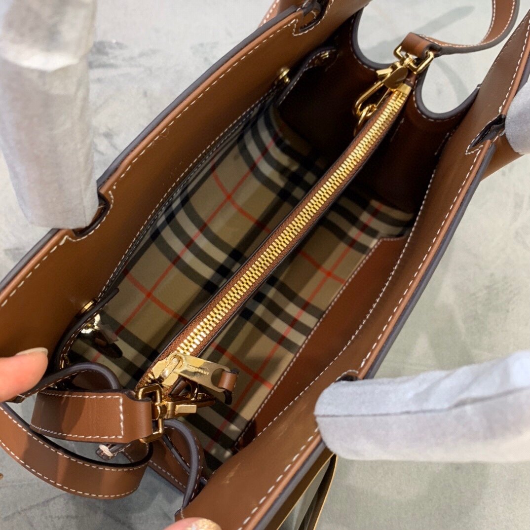 A refined silhouette in our archival Vintage Check, accented with smooth trims and polished triple-stud detailing. Carry it by the top handles or on the shoulder using the detachable strap.