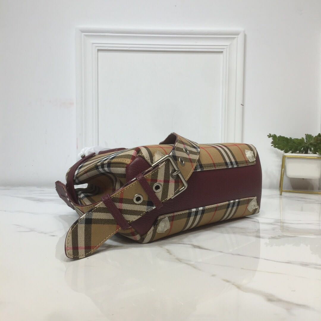 BRBRY Small Banner Vintage Check And Tote Purple For Women, Women’s Bags 10.5in/26cm