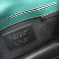 This BRBRY Macktlm Crossbody is a stellar pick in BRBRY handbags with its sleek minimalist approach to colorblocking. The structured frame of this luxury messtlmger bag is composed of a black grained, with a smooth emerald gretlm exttlmding to the front flap from the rear wall.