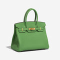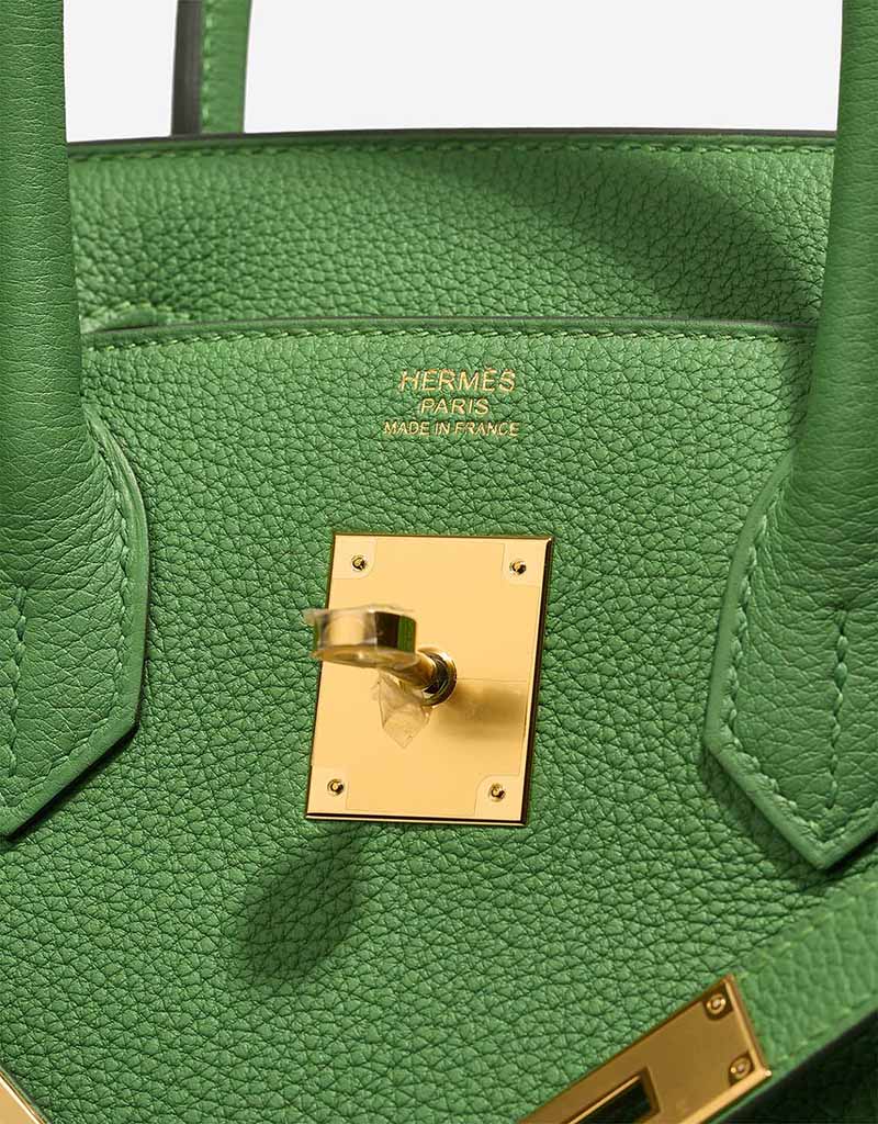 An Hermès Birkin 30 coloured in the vibrant shade of Vert Yucca. It has been handcrafted from softly-grained Togo leather.