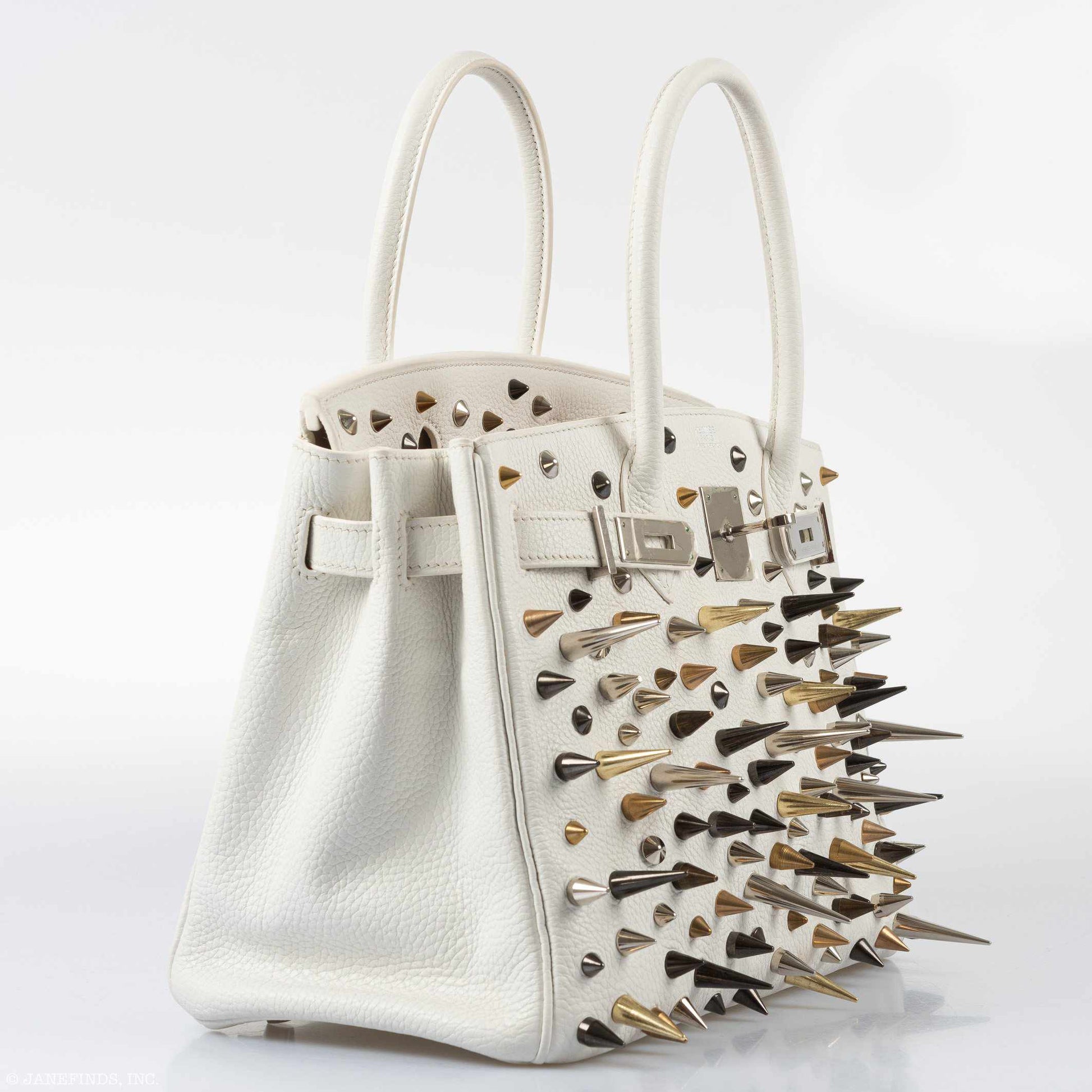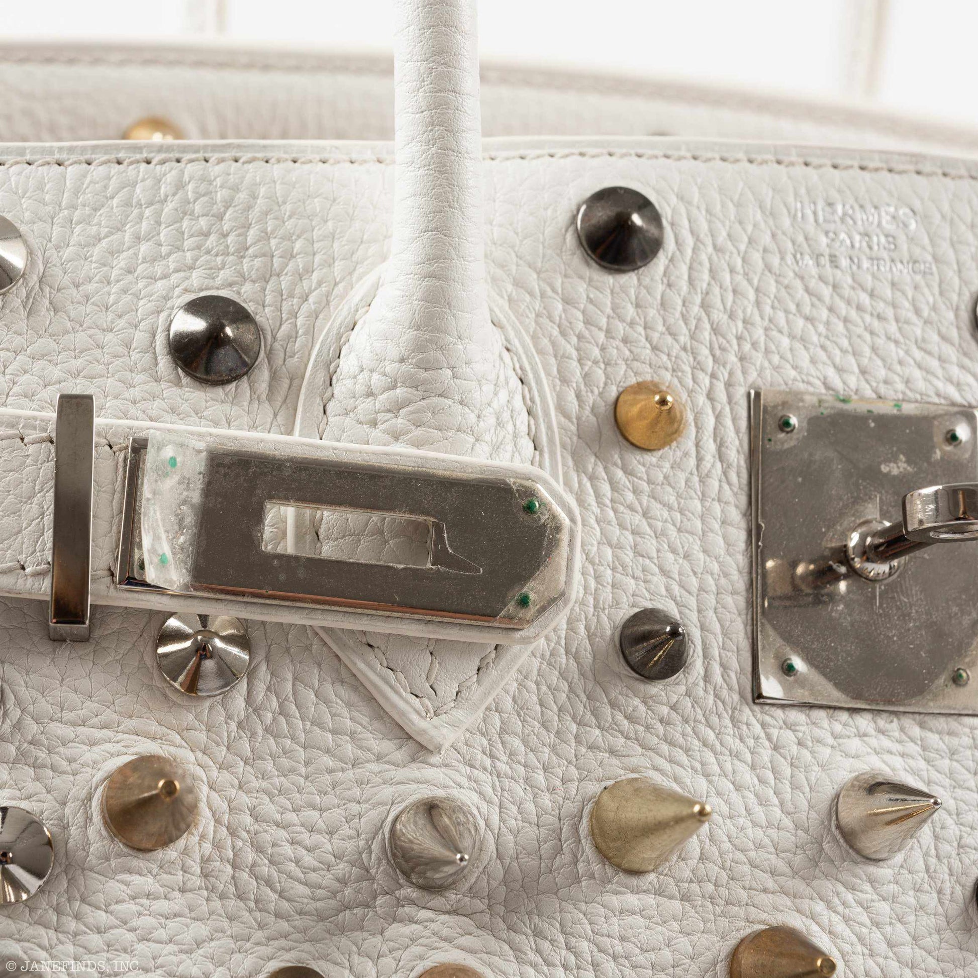 Hermès Birkin 30 White Clemence “Warrior Birkin” Palladium Hardware * JaneFinds Custom Shop