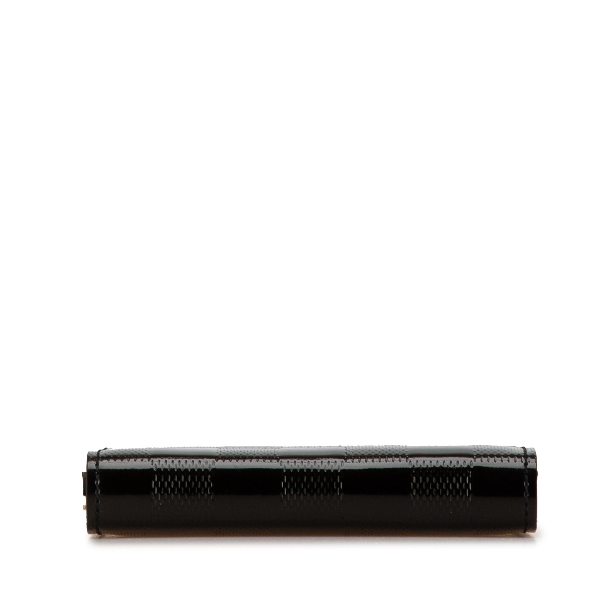 Product Details: Black Louis Vuitton Damier Vernis Ange PM Crossbody Bag. The Ange PM features a damier vernis leather body, chain link strap, a metal frame with kiss-lock closure, and an interior slip pocket. 3.9" L x 4.7" W x 0.8" D. Serial number CA0090.